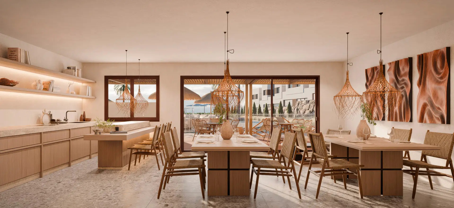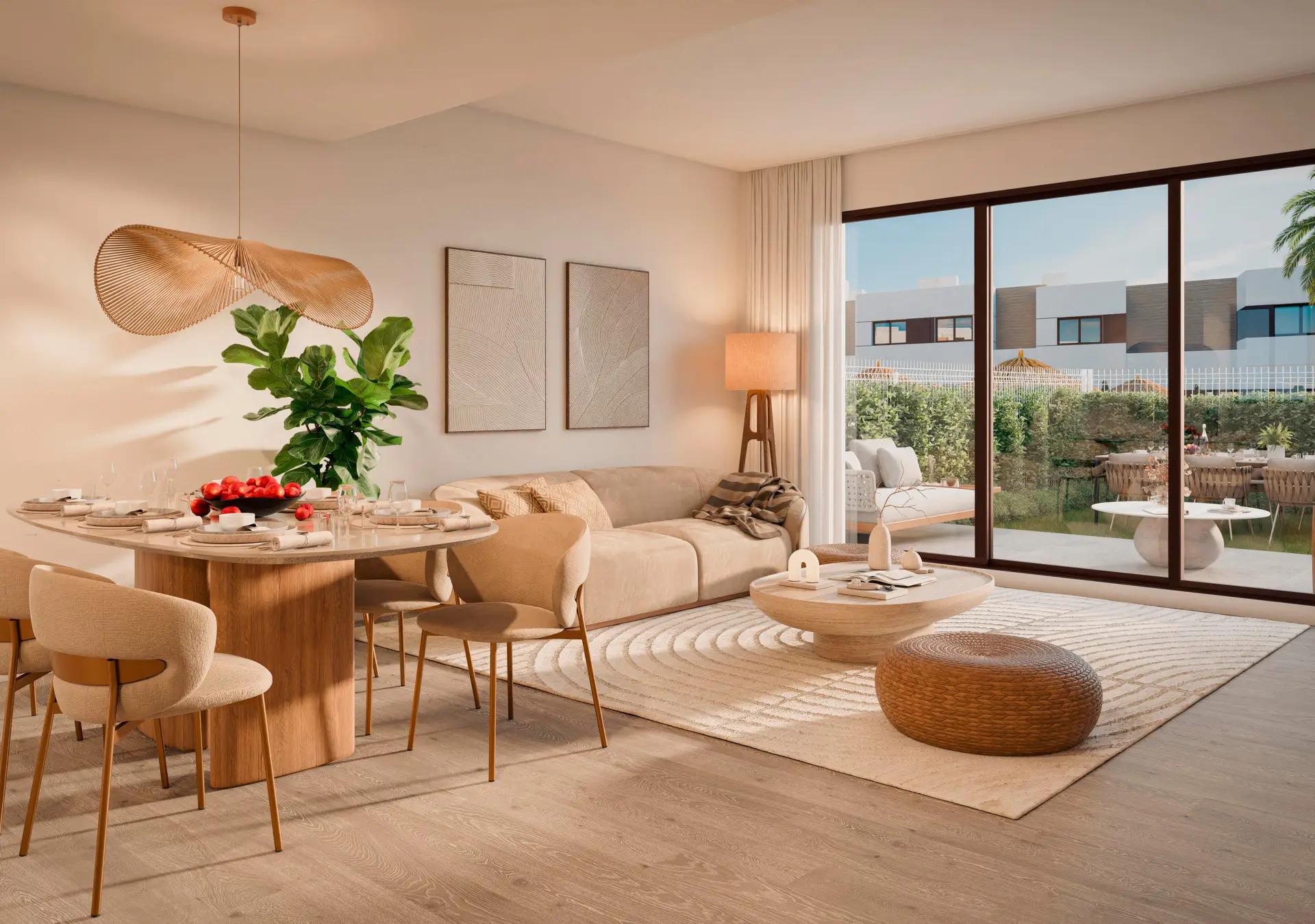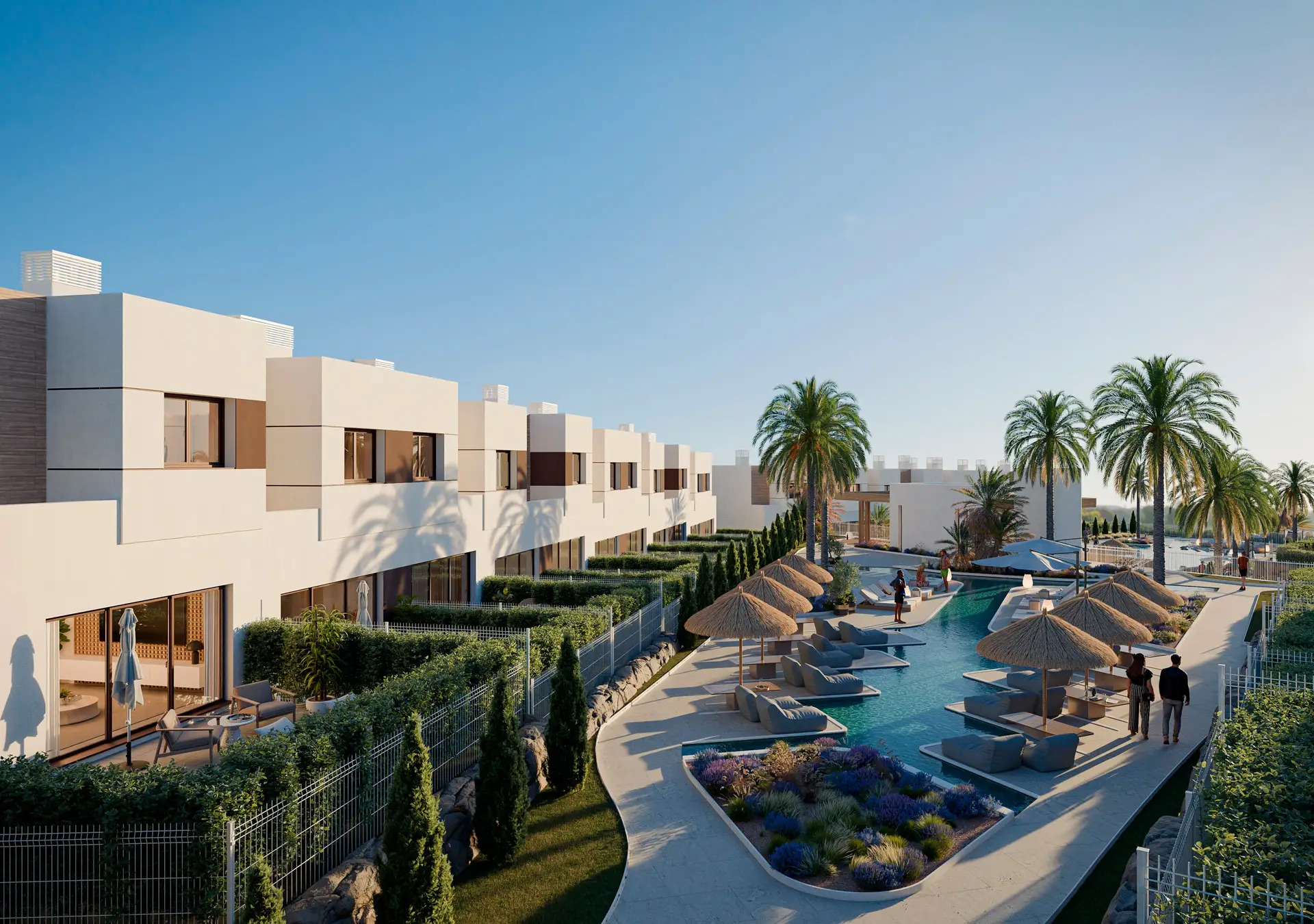 This is a magnificent residential of 3 and 4 bedroom semi-detached houses with gardens and equipped kitchens. With magnificent community services and excellent individual services, it is undoubtedly the best option for those who wish to create a great project for the future. The philosophy of the project seeks to achieve a balance between architecture and nature. Designed to enhance the beauty of the surroundings by articulating a “resort” space in which there is room for swimming pools with chill-out area, coworking area to work from the comfort of your home, fully equipped gym and a social club where you can share unforgettable moments with your loved ones and neighbors. This development is located in a privileged location, in front of a large Mediterranean forest with lush pine trees and less than 10 minutes from the beaches and only 20 minutes from Malaga airport, with easy access and perfectly communicated. Just 800 meters away is the new Costa del Sol Park, a green lung with large gardens and a wide range of leisure activities. SUBMIT INTEREST VIEW IMAGES